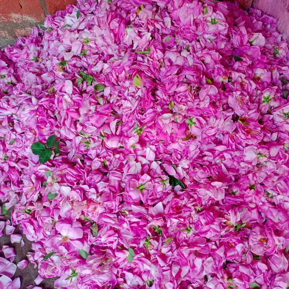 We personally visited the wild rose harvesting region in Kannauj, witnessing the flowers in their natural environment.